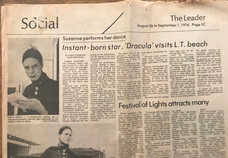 This article from the now defunct Wildwood Legend Newspaper describes Suzanne Muldowney as an “Instant Born Star” and recounts Suzannes earliest appearances as Vlad the Impaler! This article comes by way of David Check