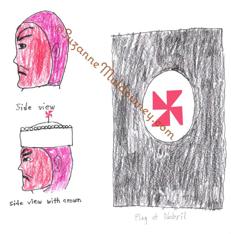 Suzanne really draws a lot of analogies in this story to the earth Olympics, Jesse Owens and Hitler are evoked but please do not use any insignias of that earth era. This takes place on the planet Nebril, So please use the Nebrillian symbol (the pink pinwheel shape.) Any story flashbacks from WWII that may ensue — be creative!