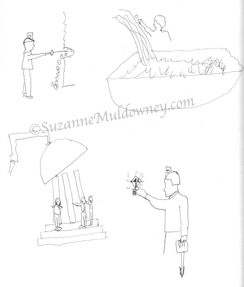 Here are some drawings Suzanne drew to that may inspire and inform your own illustrations: